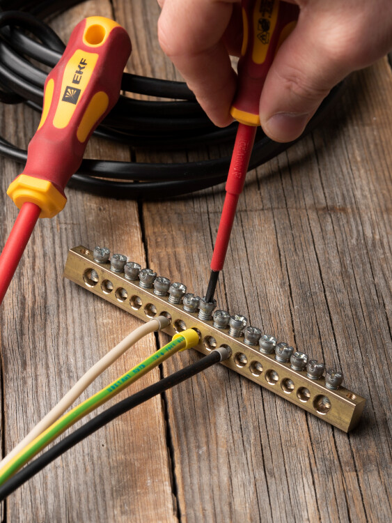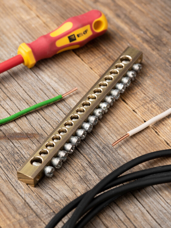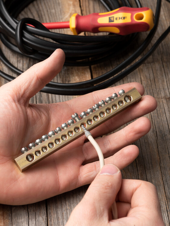 Шины предназначены для присоединения нулевых проводников (шина N) и заземления (шина PE). Шины выполнены из латуни и никелированной латуни. Нулевая шина устанавливается на изоляторе.