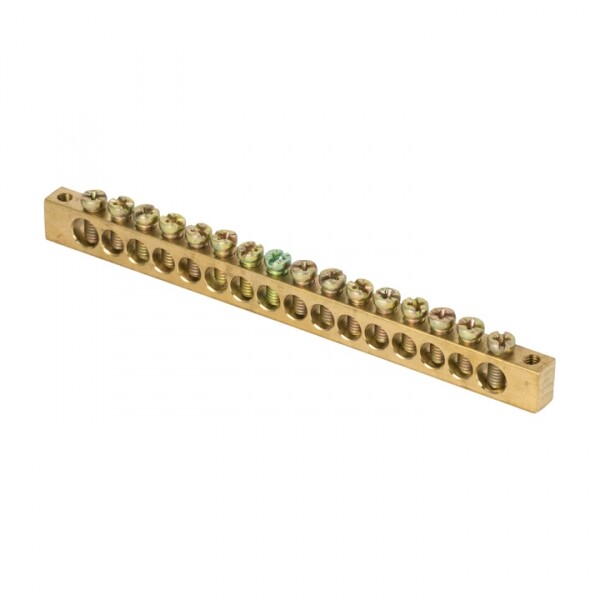 Шина PEN "ноль-земля" (8х12мм) 16 отверстий латунь крепеж по краям EKF PROxima (кр. 170 шт)