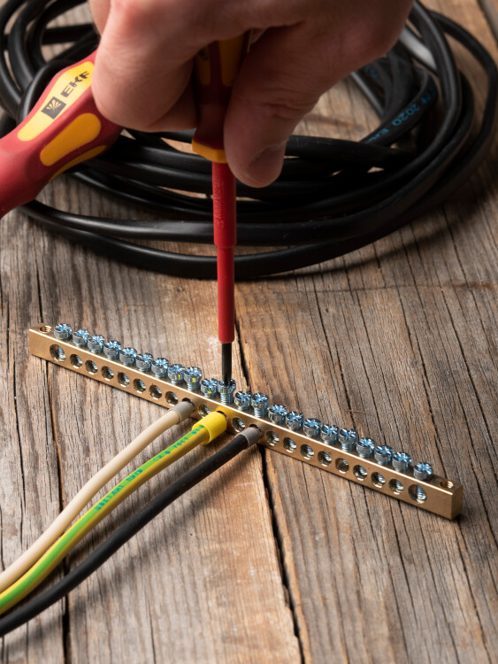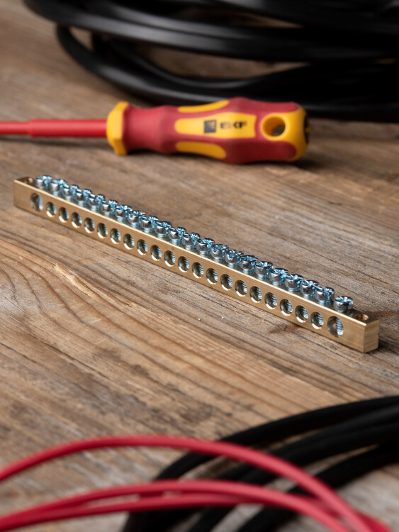 Шины предназначены для присоединения нулевых проводников (шина N) и заземления (шина PE). Шины выполнены из латуни и никелированной латуни. Нулевая шина устанавливается на изоляторе.