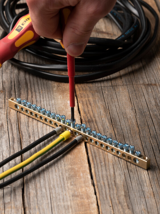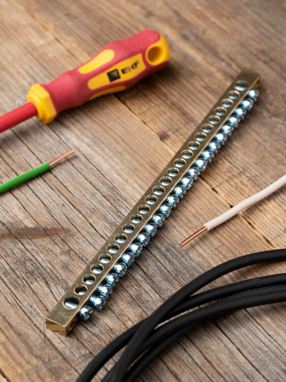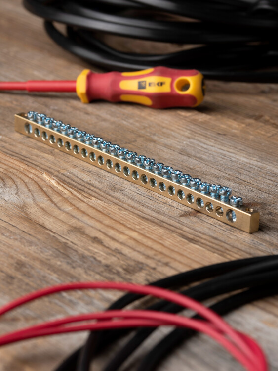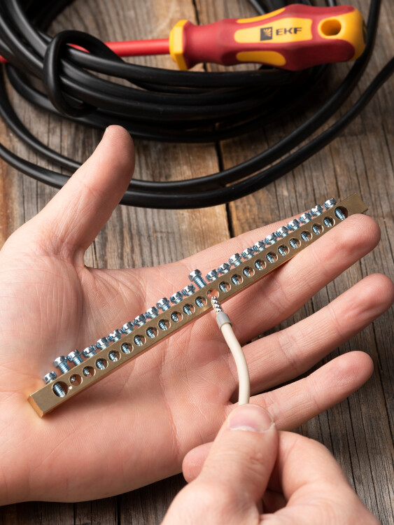 Шины предназначены для присоединения нулевых проводников (шина N) и заземления (шина PE). Шины выполнены из латуни и никелированной латуни. Нулевая шина устанавливается на изоляторе.
