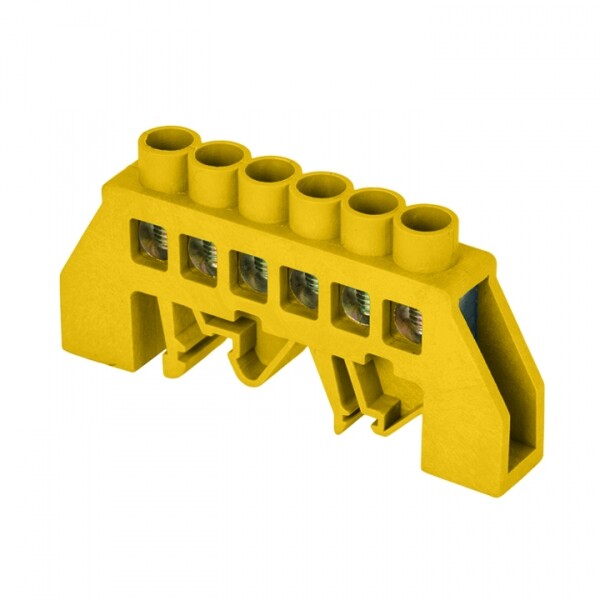 Шина "0" РЕ (8х12мм) 6 отверстий латунь желтый нейлоновый корпус комбинированный EKF PROxima (кр. 20шт)