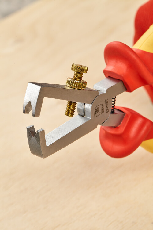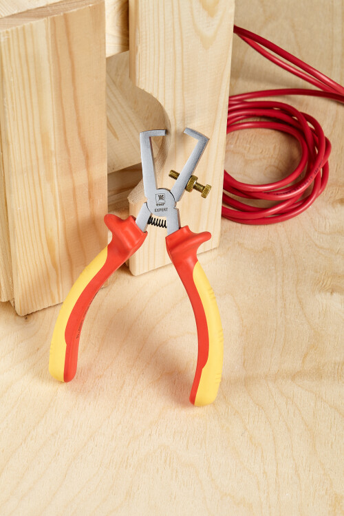 Стриппер с изолированными рукоятками для работы в электроустановках напряжением до 1000 В. Инструмент предназначен для снятия изоляции проводников диаметра 0,75…5 мм2