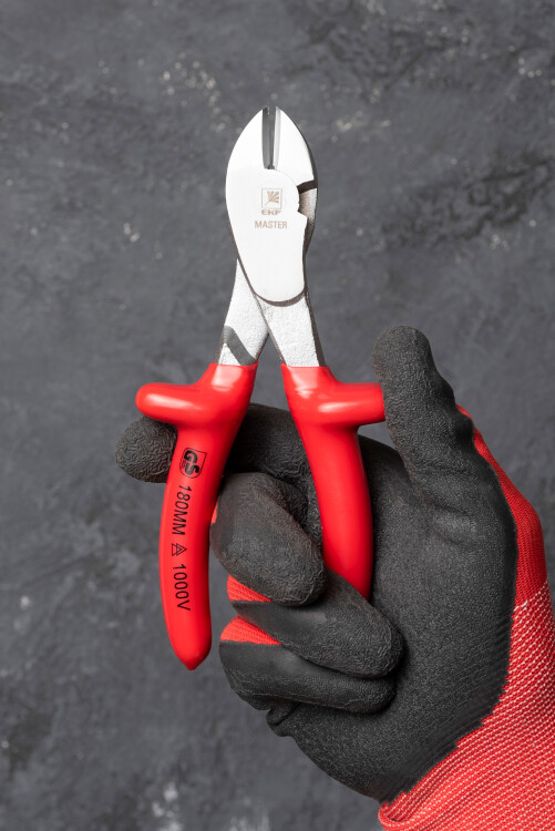 Изолированные силовые бокорезы необходимы для проведения регламентных и монтажных работ под напряжением. Специальные рукоятки выполнены из двуслойного пластизоля методом погружения. При повреждении верхнего ярко-алого слоя становится виден внутренний желтый цвет, сигнализирующий о невозможности дальнейшего использования инструмента для работ под действующим напряжением. Специальные упоры, предотвращающие попадание руки в рабочую зону, а также препятствующие перескоку искры с инструмента на руку.