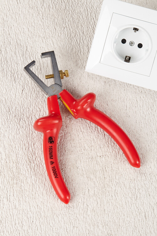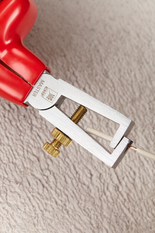 Стриппер с изолированными рукоятками для работы в электроустановках напряжением до 1000 В. Инструмент предназначен для снятия изоляции проводников диаметра 0,75…5 мм3