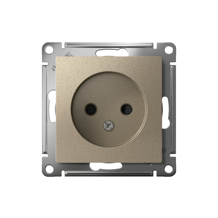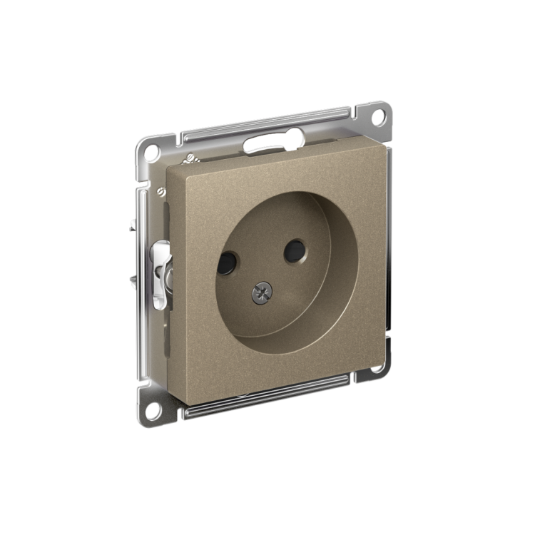 Механизм Systeme Electric (ранее Schneider Electric) серии AtlasDesign в цвете шампань розетки одинарной без заземления со шторками подходит для сетей 250 В, на ток 16 А. Шторки обеспечивают дополнительную безопасность в доме, где находятся дети. Лицевые детали из качественного ABS-пластика, устойчивого к царапинам и УФ-излучению. Усиленные прямые монтажные лапки для лучшей фиксации механизма в монтажной коробке.