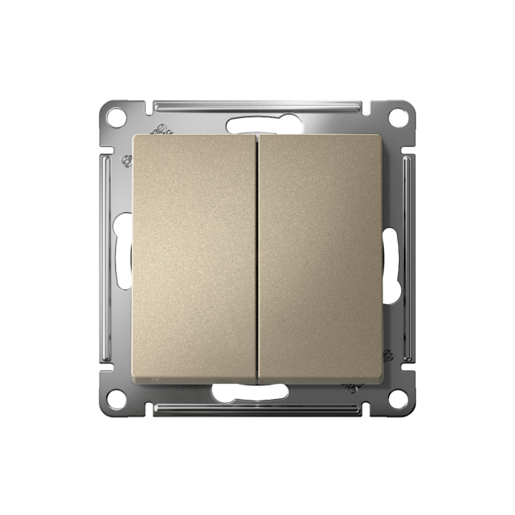 Механизм выключателя 2-клавишного Systeme Electric (ранее Schneider Electric) серии AtlasDesign в цвете шампань подходит дл я сетей 250 В, на ток 10 А. Двухклавишный выключатель позволяет управлять двумя источниками света с одной точки. Лицевые детали из качественного ABS-пластика, устойчивого к царапинам и УФ-излучению. Усиленные прямые монтажные лапки для лучшей фиксации механизма в монтажной коробке.