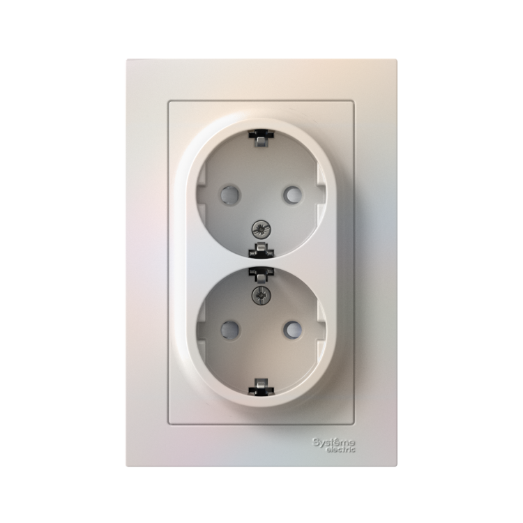 Розетка двойная в сборе Systeme Electric (ранее Schneider Electric) серии AtlasDesign в цвете жемчуг с заземлением и шторками подходит для сетей 250 В, на ток 16 А. Заземляющий контакт обеспечивает дополнительную защиту от удара электрическим током. Лицевые детали из качественного ABS-пластика, устойчивого к царапинам и УФ-излучению. Двойная розетка позволяет подключить два устройства в одном месте. Изделие поставляется в комплекте с рамкой того же цвета.