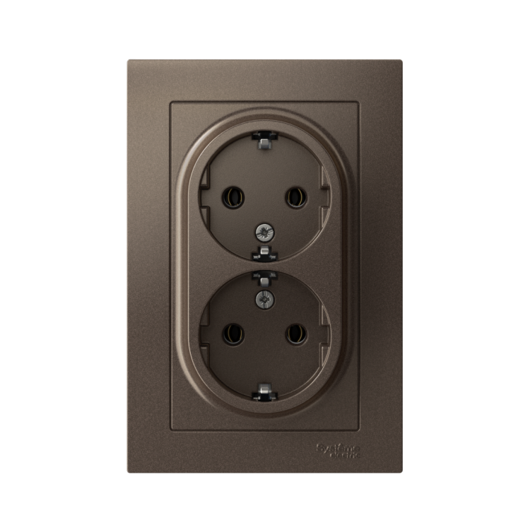 Розетка двойная в сборе Systeme Electric (ранее Schneider Electric) серии AtlasDesign в цвете мокко с заземлением, без шторо к подходит для сетей 250 В, на ток 16 А. Заземляющий контакт обеспечивает дополнительную защиту от удара электрическим током. Лицевые детали из качественного ABS-пластика, устойчивого к царапинам и УФ-излучению. Двойная розетка позволяет подключить два устройства в одном месте. Изделие поставляется в комплекте с рамкой того же цвета.