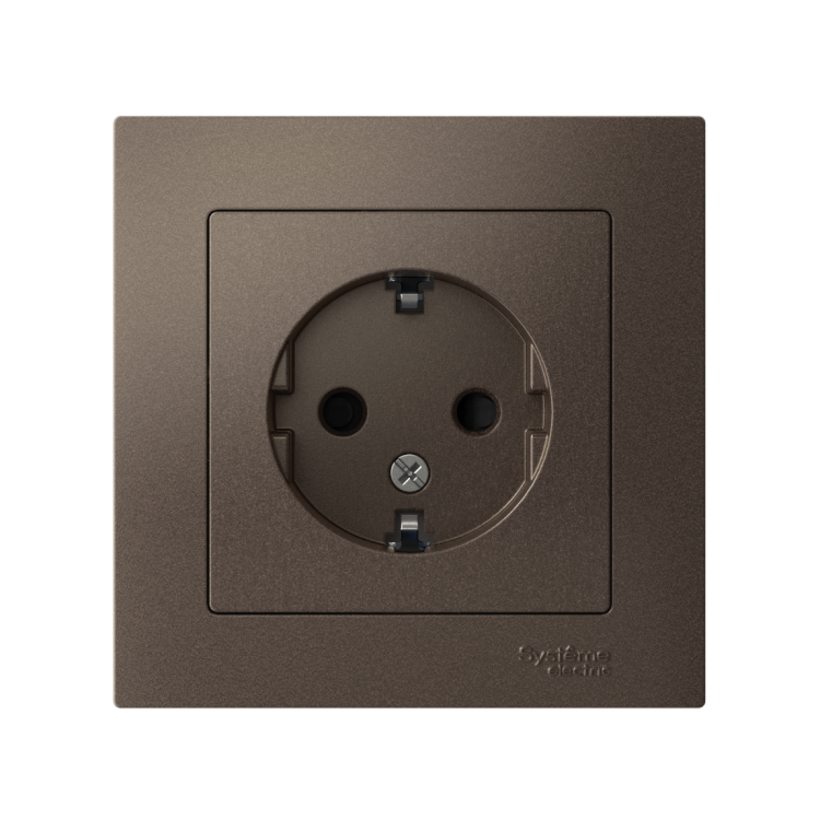 Розетка в сборе Systeme Electric (ранее Schneider Electric) серии AtlasDesign в цвете мокко одинарная с заземлением и без шт орок подходит для сетей 250 В, на ток 16 А. Заземляющий контакт обеспечивает дополнительную защиту от удара электрическим током. При наличии заземления электрический потенциал уходит в землю, защищая человека. Лицевые детали из качественного ABS-пластика, устойчивого к царапинам и УФ-излучению. Изделие поставляется в комплекте с рамкой того же цвета.