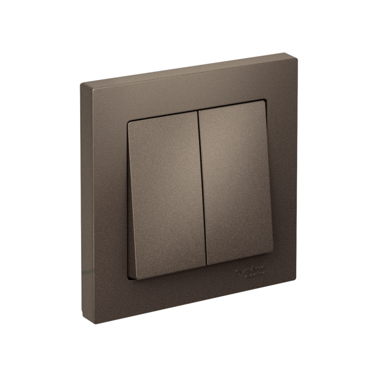 Выключатель в сборе Systeme Electric (ранее Schneider Electric) серии AtlasDesign в цвете мокко 2-клавишный подходит для сет ей 250 В, на ток 10 А. Двухклавишный выключатель позволяет управлять двумя источниками света с одной точки. Лицевые детали из качественного ABS-пластика, устойчивого к царапинам и УФ-излучению. Изделие поставляется в комплекте с рамкой того же цвета. Усиленные прямые монтажные лапки для лучшей фиксации механизма в монтажной коробке.