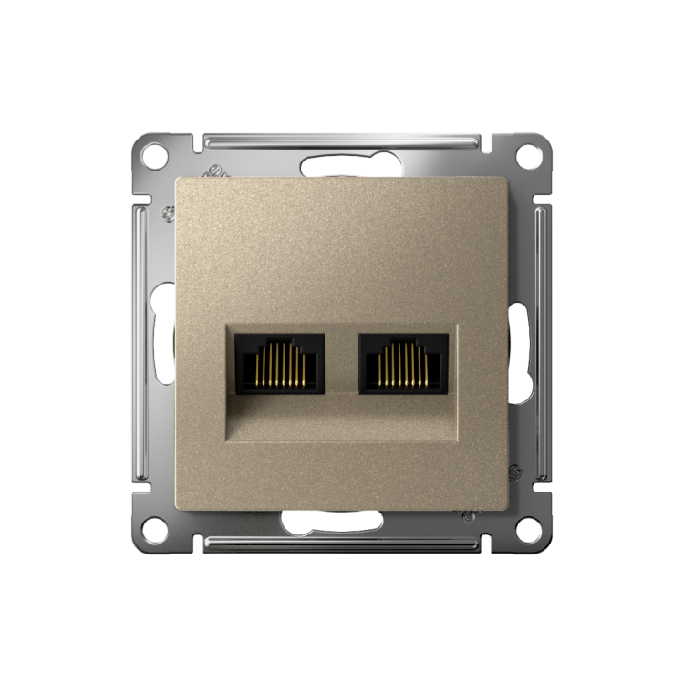 Механизм Systeme Electric (ранее Schneider Electric) серии AtlasDesign в цвете шампань двойной розетки компьютерной с разъёмом RJ45 категории 5е предназначен для удобного и быстрого подключения вашего компьютера к локальной вычислительной сети. Лицевые детали из качественного ABS-пластика, устойчивого к царапинам и УФ-излучению. Усиленные прямые монтажные лапки для лучшей фиксации механизма в монтажной коробке.