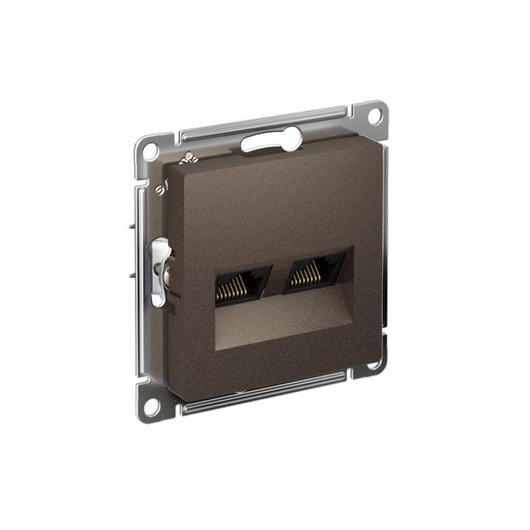 Механизм Systeme Electric (ранее Schneider Electric) серии AtlasDesign в цвете мокко двойной розетки компьютерной с разъёмом RJ45 категории 5е предназначен для удобного и быстрого подключения вашего компьютера к локальной вычислительной сети. Лицевые детали из качественного ABS-пластика, устойчивого к царапинам и УФ-излучению. Усиленные прямые монтажные лапки для лучшей фиксации механизма в монтажной коробке.