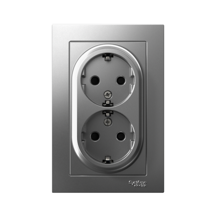 Розетка двойная в сборе Systeme Electric (ранее Schneider Electric) серии AtlasDesign в цвете сталь с заземлением и шторками подходит для сетей 250 В, на ток 16 А. Заземляющий контакт обеспечивает дополнительную защиту от удара электрическим током. Лицевые детали из качественного ABS-пластика, устойчивого к царапинам и УФ-излучению. Двойная розетка позволяет подключить два устройства в одном месте. Изделие поставляется в комплекте с рамкой того же цвета.