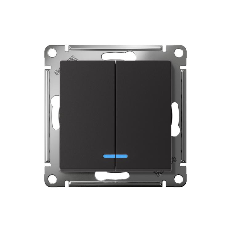 Механизм Systeme Electric (ранее Schneider Electric) серии AtlasDesign в цвете карбон выключателя 2-клавишного c подсветкой подходит для сетей 250 В, на ток 10 А. Благодаря светодиодной подсветке синего цвета изделие легко найти в темноте. Двухклавишный выключатель позволяет управлять двумя источниками света с одной точки. Лицевые детали из качественного ABS-пластика, устойчивого к царапинам и УФ-излучению. Благодаря покрытию «soft touch» к изделию приятно прикасаться. (ранее Schneider Electric ЭУИ UNICA NEW NU521154N)