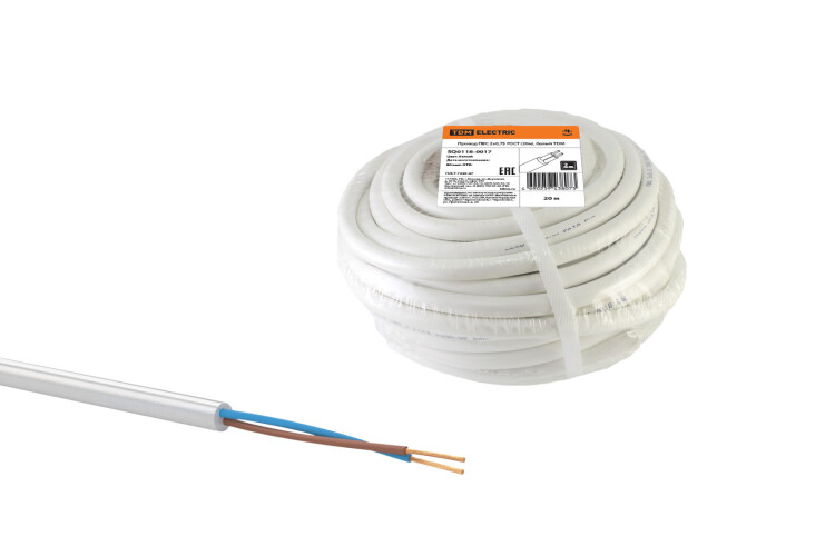 Провод ПВС 2х0,75 ГОСТ (20м), белый TDM (кр.100м)