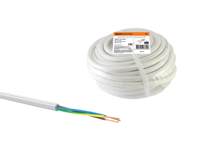 Провод ПВС 3х0,75 ГОСТ (20м), белый TDM (кр.100м)