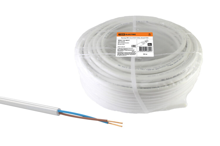 Провод ПВС 2х1,5 ГОСТ (50м), белый TDM (кр.50м)