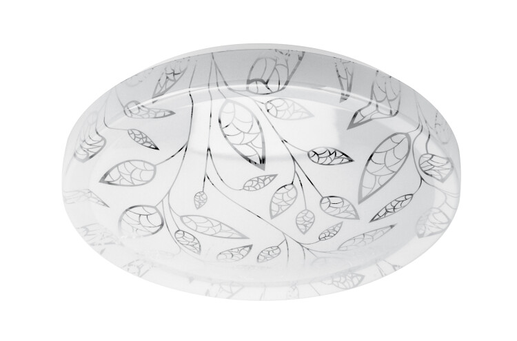 LED люстра имеет привлекательный дизайн плафона. Ветки с узорчатыми лепестками гармонично смотрятся на круглом плоском корпусе. Такая люстра прекрасно впишется в интерьер гостиной, коридора, спальни или детской.