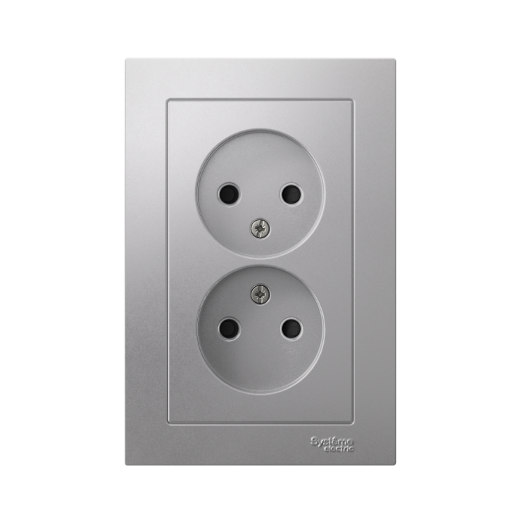 Розетка двойная в сборе Systeme Electric (ранее Schneider Electric) серии AtlasDesign в цвете алюминий без заземления со шторками подходит для сетей 250 В, на ток 16 А. Лицевые детали из качественного ABS-пластика, устойчивого к царапинам и УФ-излучению. Усиленные прямые монтажные лапки для лучшей фиксации механизма в монтажной коробке. Двойная розетка позволяет подключить два устройства в одном месте. Изделие поставляется в комплекте с рамкой того же цвета.