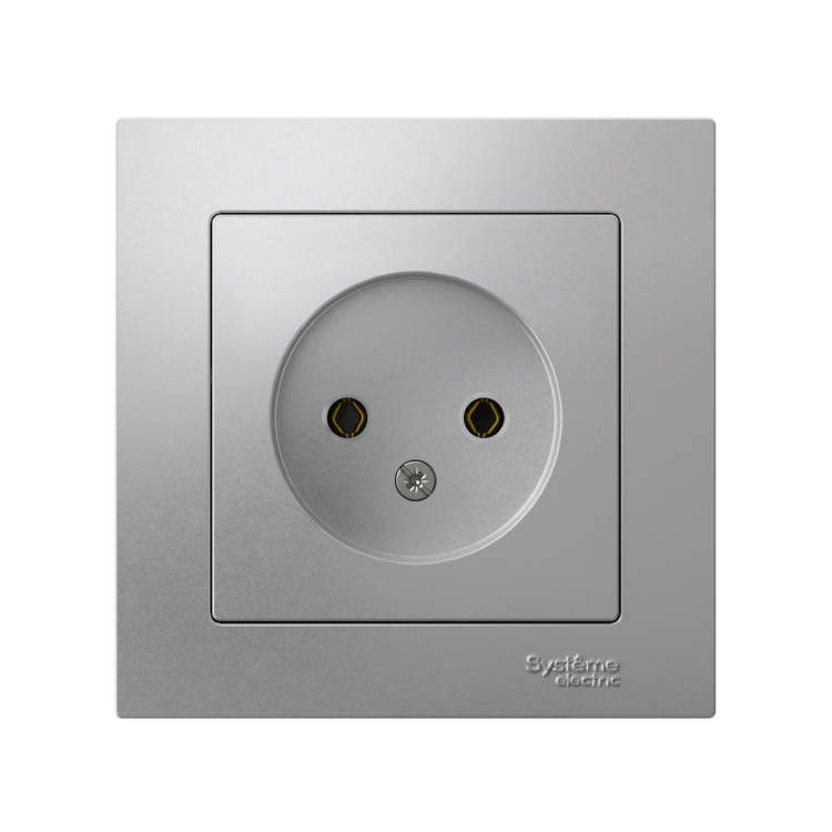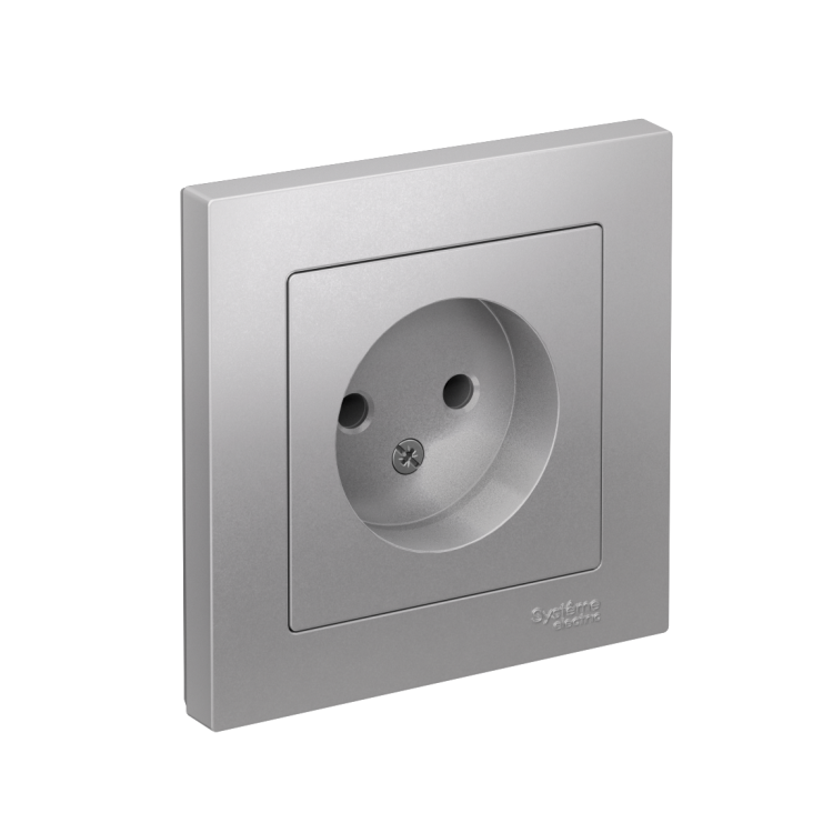 Розетка в сборе Systeme Electric (ранее Schneider Electric) серии AtlasDesign в цвете алюминий одинарная без заземления и без шторок подходит для сетей 250 В, на ток 16 А. Лицевые детали из качественного ABS-пластика, устойчивого к царапинам и УФ-излучению. Изделие поставляется в комплекте с рамкой того же цвета. Усиленные прямые монтажные лапки для лучшей фиксации механизма в монтажной коробке.