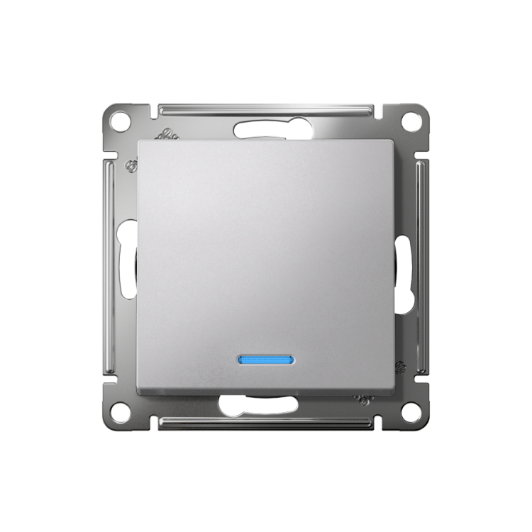 Механизм выключателя 1-клавишного с подсветкой Systeme Electric (ранее Schneider Electric) серии AtlasDesign в цвете алюмин ий подходит для сетей 250 В, на ток 10 А. Благодаря светодиодной подсветке синего цвета изделие легко найти в темноте. Усиленные прямые монтажные лапки для лучшей фиксации механизма в монтажной коробке. Лицевые детали из качественного ABS-пластика, устойчивого к царапинам и УФ-излучению. (ранее Schneider Electric ЭУИ UNICA NEW NU520130N)