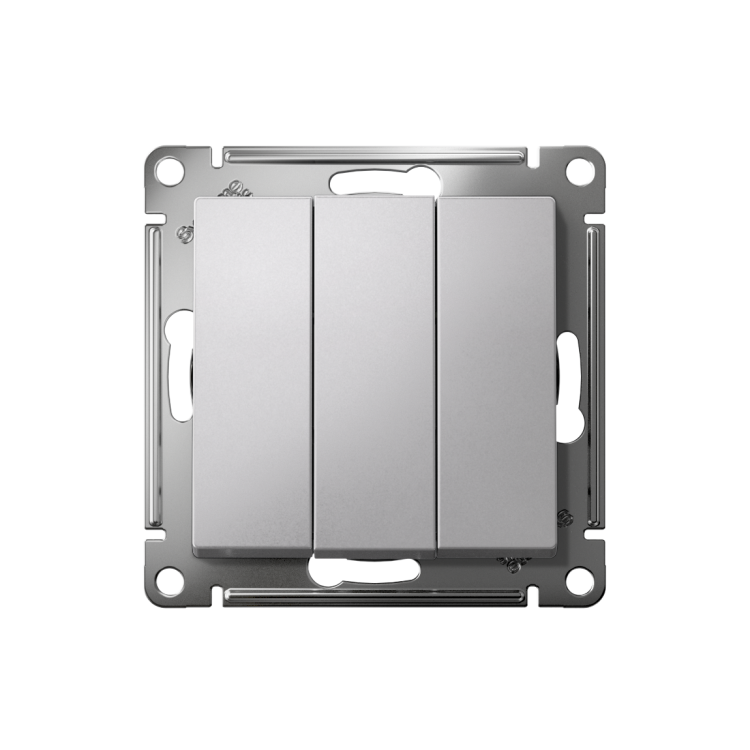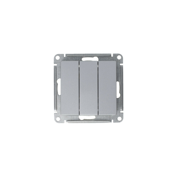 Механизм Systeme Electric (ранее Schneider Electric) серии AtlasDesign в цвете алюминий выключателя 3-клавишного подходит д ля сетей 250 В, на ток 10 А. Трёхклавишный выключатель позволяет управлять тремя источниками света из одной точки. Лицевые детали из качественного ABS-пластика, устойчивого к царапинам и УФ-излучению. Усиленные прямые монтажные лапки для лучшей фиксации механизма в монтажной коробке.