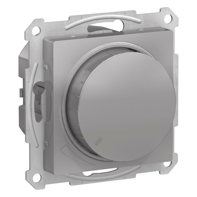 Механизм Systeme Electric (ранее Schneider Electric) серии AtlasDesign в цвете алюминий светорегулятора поворотно-нажимного на выходную мощность 315 Вт.
