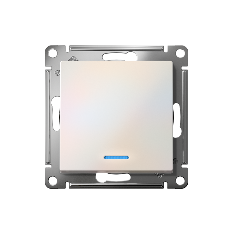 Механизм выключателя 1-клавишного с подсветкой Systeme Electric (ранее Schneider Electric) серии AtlasDesign в цвете жемчуг подходит для сетей 250 В, на ток 10 А. Благодаря светодиодной подсветке синего цвета изделие легко найти в темноте. Лицевые детали из качественного ABS-пластика, устойчивого к царапинам и УФ-излучению. Усиленные прямые монтажные лапки для лучшей фиксации механизма в монтажной коробке.