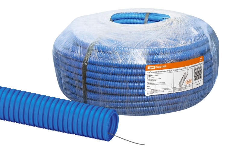 Труба гофрированная ПНД d 16 с зондом (100 м) легкая синяя TDM (кр.100м)
