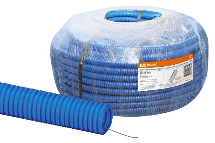 Труба гофрированная ПНД d 20 с зондом (100 м) легкая синяя TDM (кр.100м)