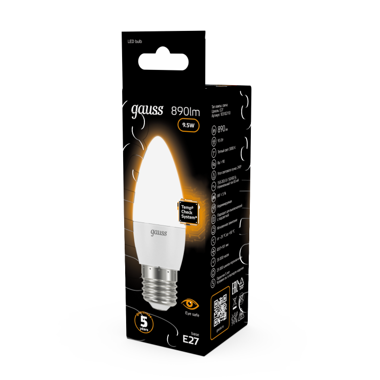 Светодиодные лампы Gauss Black Candle созданы в форме свечи. Лампы подойдут как для домашнего, так и для коммерческого использования. Такой тип освещения прекрасно смотрится в светильниках без плафонов или устанавливается в люстры и бра. Модель обладает широким диапазоном цветовых температур и мощностей, что поможет создать атмосферу тепла и уюта или концентрации. Равномерный спектр света создает зрительный комфорт в любом помещении. Данный тип освещения от Gauss обеспечивают стабильную работу в течение всего срока службы.