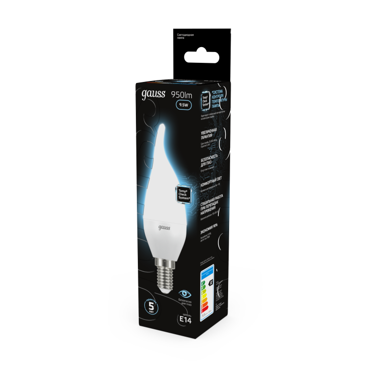 Светодиодные лампы Gauss Black Candle созданы в форме свечи. Лампы подойдут как для домашнего, так и для коммерческого использования. Такой тип освещения прекрасно смотрится в светильниках без плафонов или устанавливается в люстры и бра. Модель обладает широким диапазоном цветовых температур и мощностей, что поможет создать атмосферу тепла и уюта или концентрации. Равномерный спектр света создает зрительный комфорт в любом помещении. Данный тип освещения от Gauss обеспечивают стабильную работу в течение всего срока службы.