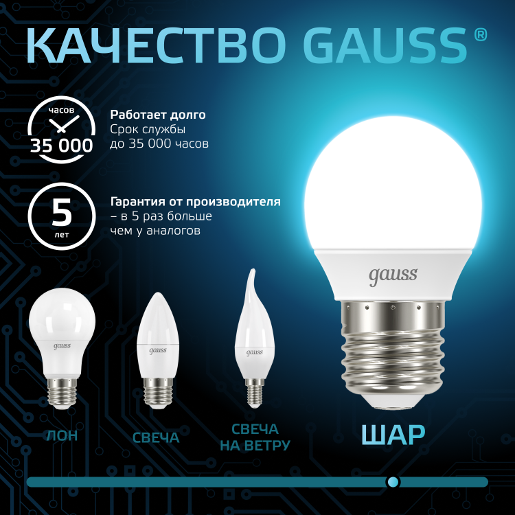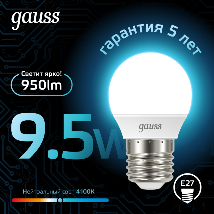 Данные лампы от Gauss обеспечивает надежную и стабильную работу в течение всего срока службы. За счет равномерного распределения света по всему пространству этот тип освещения более комфортный для глаз и способствует снижению утомляемости. Благодаря высокому индексу цветопередачи свет лампы передает естественные цвета и оттенки. Светодиодные лампы Gauss Black подходят для всех моделей осветительных приборов, оборудованных традиционным цоколем Е27. Широкий диапазон цветовых температур в данной линейке позволяет выбрать лампу под решение любой задачи: с теплым свечением для создания уютного освещения в доме и для яркого освещения о бъемных помещений и придомовых территорий.
