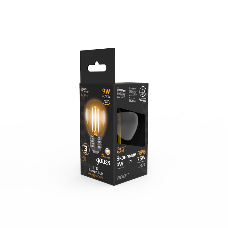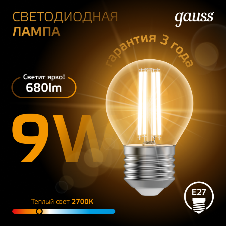 Светодиодные филаментные лампы GAUSS - это новейшие технологии в светотехнике. Лампы имеют привычный вид классических ламп накаливания, освещают пространство на 360о и дают больше света по сравнению с обычными светодиодными лампами за счет прозрачной колбы. Идеально подходят для хрустальных люстр и открытых светильников, а также для реализации дизайнерских решений, где важен вид классических ламп накаливания.