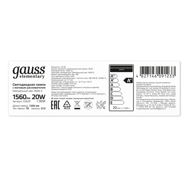 Линейные лампы Gauss T8 с цоколем G13 - выгодная замена стандартных люминесцентных ламп. Замена безопасна и не требует менять светильники – длина ламп светодиодных соответствует установленным стандартам Светят ярче и экономят в 7 раз больше электроэнергии! Структура лампы позволяет получить равномерный, мягкий световой поток, который светит в одном направлении, что позволяет добиться максимальной эффективности в отличии от люминесцентных аналогов. В ассортименте представлены вариации и с поворотным цоколем - то есть они подойдут для светильников и с горизонтальной, и с вертикальной ориентацией цоколя. Наличие поворотного цоколя не только облегчает процедуру монтажа LED лампы, но и позволяет направлять световой поток в том направлении, в котором это необходимо. Лампы с матовым стеклом обладают двумя температурами цвета - 4000 K и 6500К