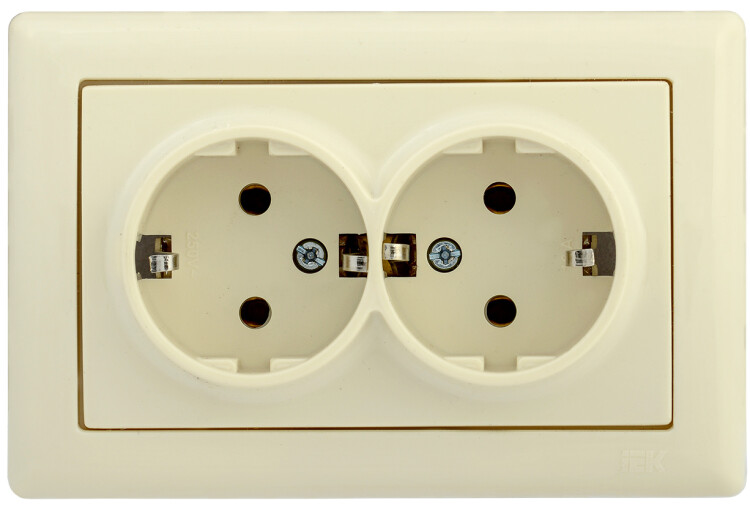 "РС21-1-0-БК Розетка 2-ая с з/к 16А BOLERO кремовый IEK (кр.1шт)