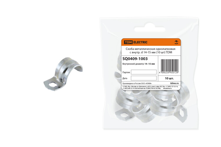 Скоба металлическая однолапковая с внутр. d 14-15 мм (10 шт) TDM (кр.10шт)