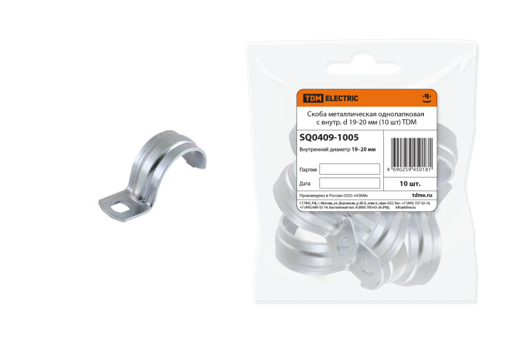 Скоба металлическая однолапковая с внутр. d 19-20 мм (10 шт) TDM (кр.10шт)