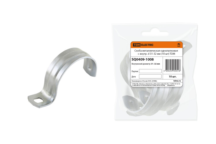 Скоба металлическая однолапковая с внутр. d 31-32 мм (10 шт) TDM (кр.10шт)