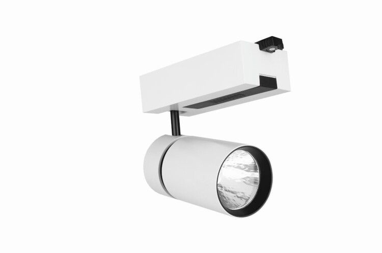 Светодиодный светильник серии TT-01 предназначен для акцентной подсветки интерьеров и в торговых залах. Светильник устанавливается на трехфазный шинопровод (крепление входит в комплект). Металлический корпус покрыт белой краской.