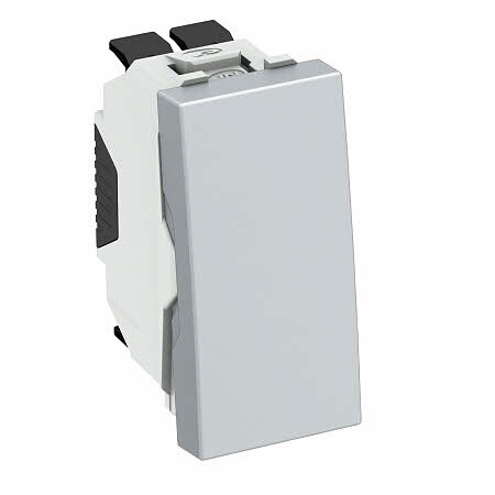 Переключатель кнопочный одноклавишный 10А 250В, 0,5 модуля Modul45, 45х22,5 мм цвет алюминиевый лакTA-WB AL0.5(кр.1шт)