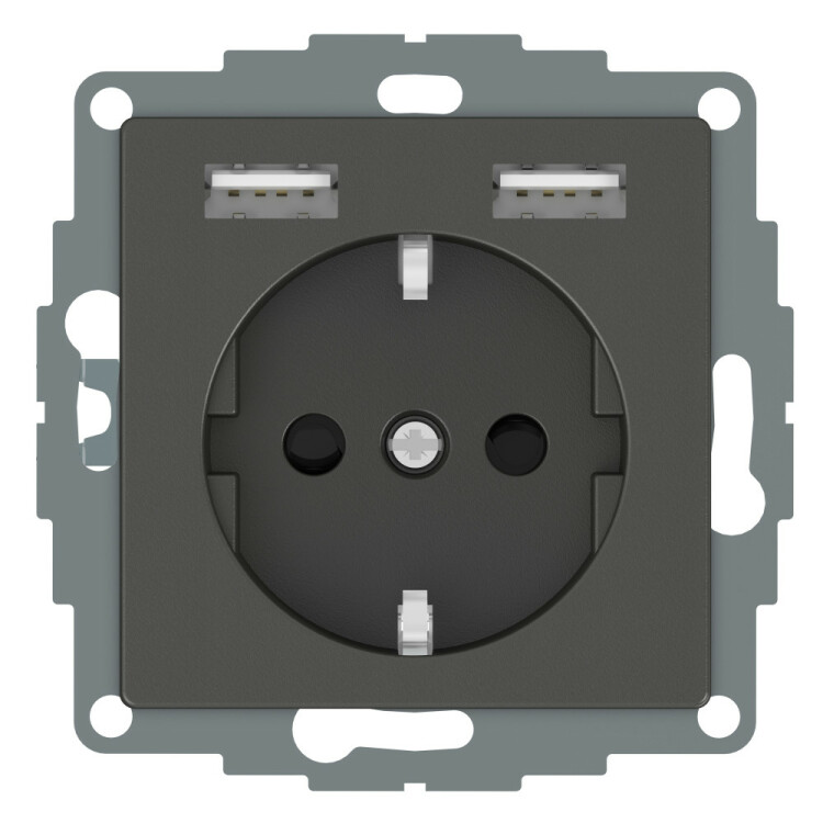 MERTEN SM Розетка Schuko с 2 USB c зарядным устройством 2,4A антрацит. тип встроенных клемм: 2 USB порт 5 V постоянный ток 2.4 A - входная мощность: 12 Вт. Преимущества: Безграничные возможности Merten System M. Основой изделий являются высококачественные механизмы скрытого монтажа. Они отличаются высокой гибкостью использования и разнообразием выполняемых функций: это электрические розетки, клавишные и кнопочные выключатели, устройства управления рольставнями и регуляторы температуры, а также телефонные, ТВ/аудио и компьютерные розетки, датчики движения и присутствия, термостаты, светорегуляторы и реле времени, компоненты радиосистемы и системы автоматизации KNX. Merten System M удовлетворяет всем требованиям и успешно решает любые задачи.... применения: Изделия Merten System M подходят для жилых и нежилых помещений. Их устанавливают в школах, офисах, больницах или отелях., Инновационные функции для классических электрических установок, Выполнение функций интеллектуального интерфейса для работы с KNX, Обеспечение комфорта, безопасности и эффективности использования электроэнергии, Возможность простой и гибкой модернизации с System M и системой RF..