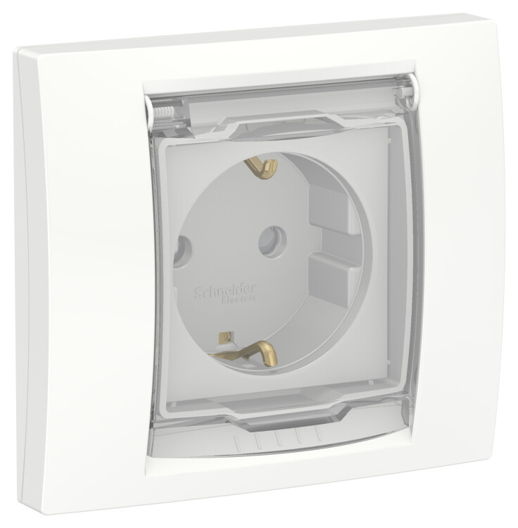 Розетка Schneider Electric UNICA NEW (белый) с заземлением, со шторками, с крышкой предназначена для сетей до 250 В на ток до 16 А.