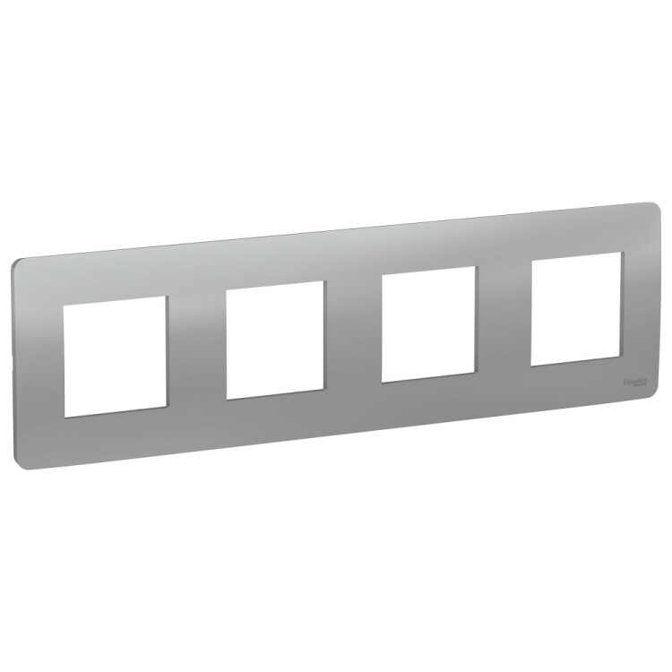 Рамка Schneider Electric UNICA STUDIO (алюминий) четырёхместная, устанавливается в вертикальном или в горизонтальном положениях.