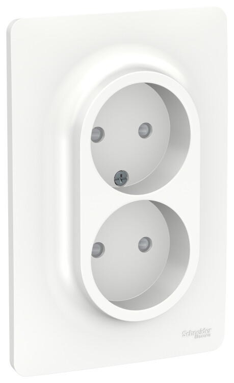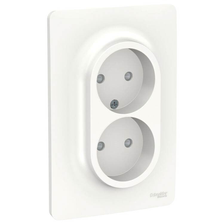 Розетка Schneider Electric UNICA NEW (белый) двойная без заземления, со шторками, с винтовыми зажимами предназначена для сетей до 250 В на ток до 16 А.