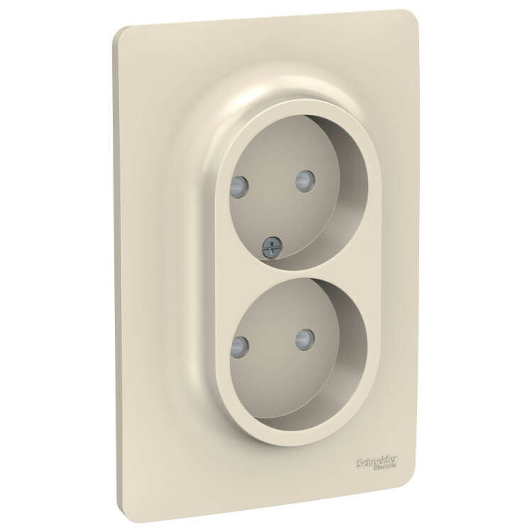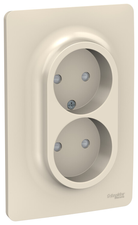 Розетка Schneider Electric UNICA NEW (бежевый) двойная без заземления, со шторками, с винтовыми зажимами предназначена для сетей до 250 В на ток до 16 А.