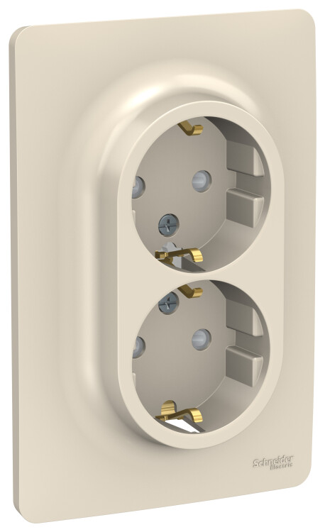 Розетка Schneider Electric UNICA NEW (бежевый) двойная с заземлением, со шторками, с винтовыми зажимами предназначена для сетей до 250 В на ток до 16 А.