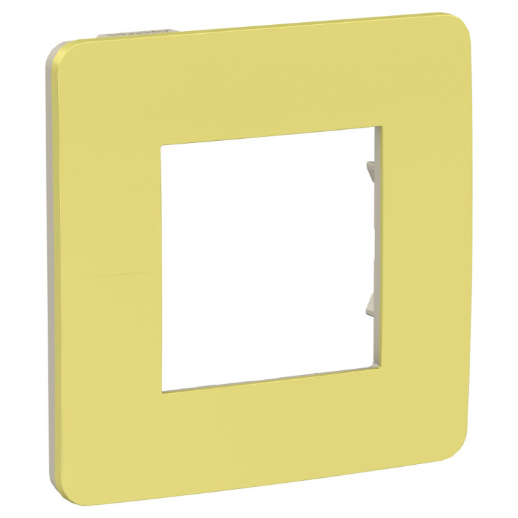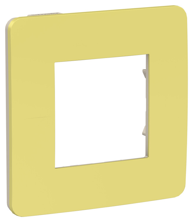 Рамка Schneider Electric UNICA STUDIO Color (зелёное яблоко) одинарная с задней панелью цвета бежевый.