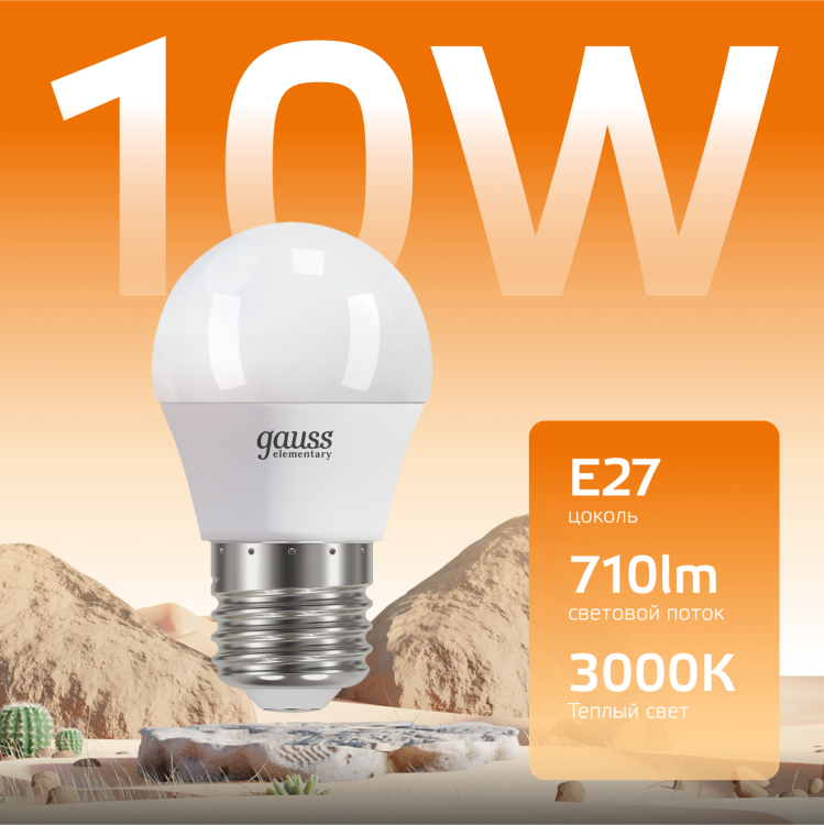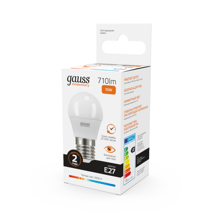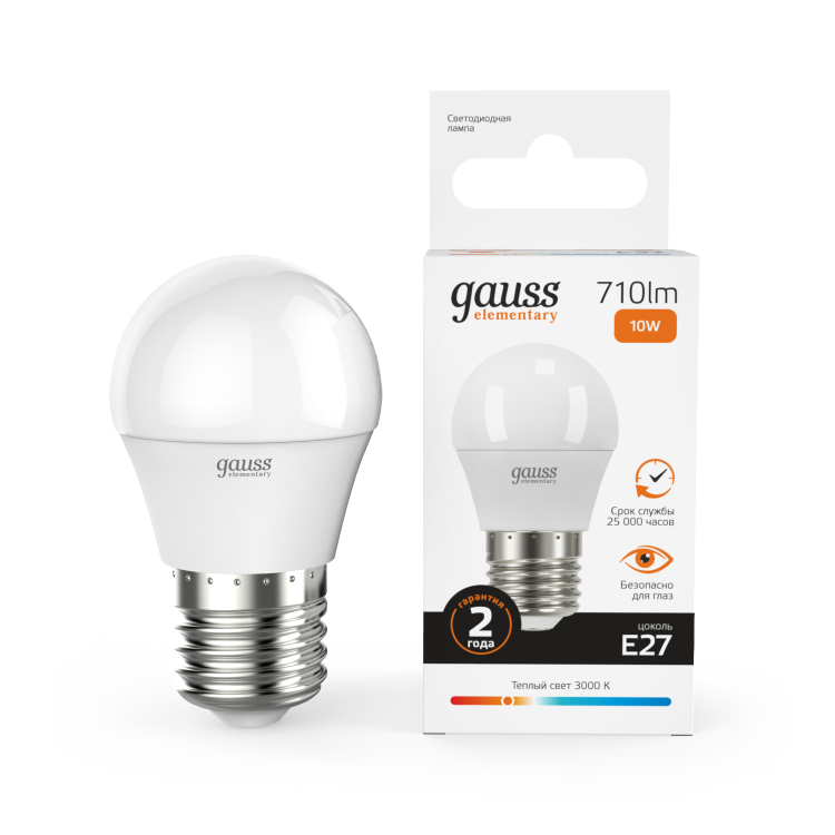 Светодиодные лампы Gauss Elementary – вечная классика, которая является энергосберегающей заменой обычным лампам накаливания. Модели представленные в ассортименте бренда обеспечивают пространство мягким не мерцающим светом и обладают всеми техническими характеристиками европейского уровня. В линейке представлены модели разных форм, высоких мощностей и размеров. Равномерное распределение света создает зрительный комфорт в любом помещении. Данная серия ламп создана для массового потребителя и имеет самое лучшее соотношение цена-качество.