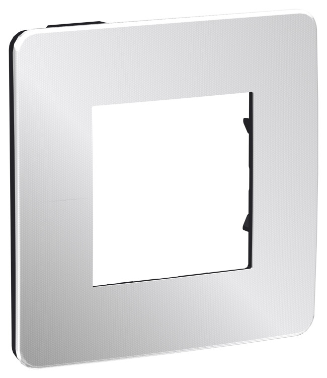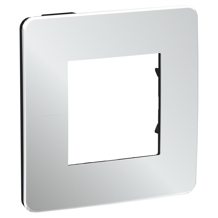 Рамка Schneider Electric UNICA STUDIO Metal (хром) одинарная с задней панелью цвета антрацит.